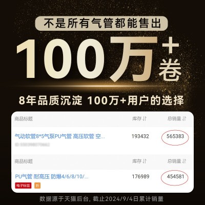 PU气管软管气动气泵空压机气管高压耐高温子16/12/10/4/6/8mm气管