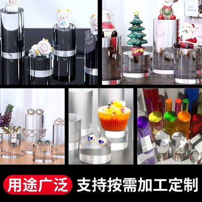 亚克力透明水晶圆柱手办展示台模型增高底座珠宝摆件架化妆品展托