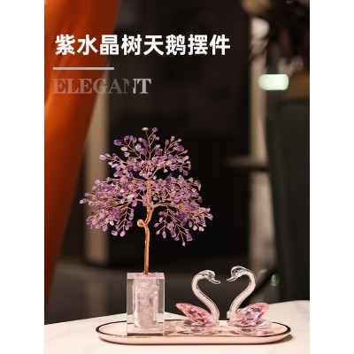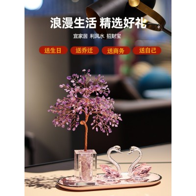 紫水晶摇钱树发财树装饰摆件轻奢高档客厅电视柜乔迁生日结婚礼物