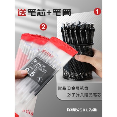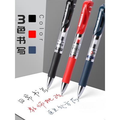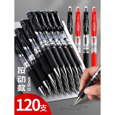按动中性笔0.5mm学生用黑红蓝可按压式水笔考试签字书写用子弹头学习文具碳素水笔办公文教医生处方书写工具